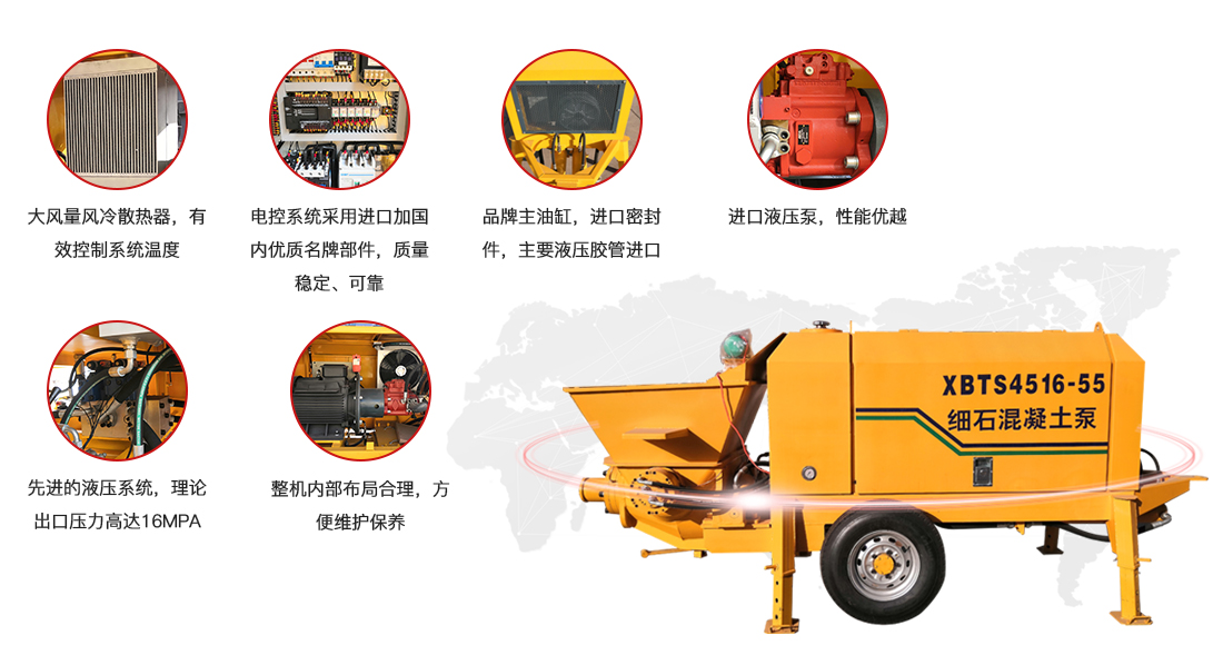 2018年我公司經(jīng)過近10年的技術(shù)積累和市場調(diào)研又陸續(xù)開發(fā)了XBTS50-55細石混凝土兩用泵和XBTS4516-55高壓細石混凝土泵兩款新產(chǎn)品,XBTS50-55既可以泵送標準混凝土又可以泵送細石混凝土,特別適合地下車庫及大面積地面施工,施工效率高,XBTS4516-55高壓細石混凝土泵理論出口壓力達到16Mpa,主要面向超高樓層的細石混凝土泵送,泵送高度可達200米。